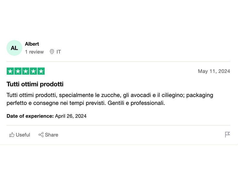 Facciamo di tutto per far sì che tra la raccolta e il consumo dei nostri prodotti intercorra il più breve tempo possibile. In questo modo, i nostri consumatori potranno assaporare un prodotto fresco, con tutte le sue caratteristiche nutrizionali e organolettiche.